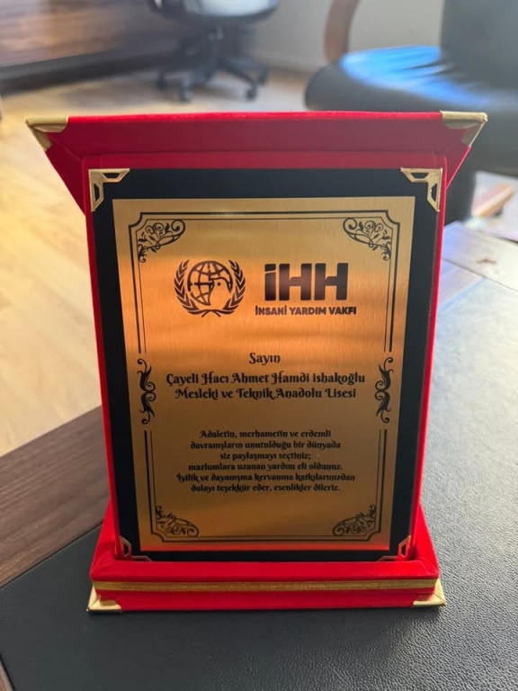 “Gazze’ye Umut Ol” Kermesimizden elde ettiğimiz 76.700 TL’yi İHH temsilcisi Muhammet Ekşi Beyefendiye teslim ettik. Rabbim zulüm gören bebeklere, kadınlara, yaşlılara ulaşmasını nasip etsin. Kermesimize destek olan başta velilerimizden, katılan vatandaşlarımızdan, öğrencilerimizden ve öğretmenlerimizden Rabbim razı olsun. Tüm kardeşlerimizden isteğimiz odur ki Filistin usulünün dimaklarımızda normalleşmemesidir. Bu zulümü ve soykırımı haykırabileceğimiz her yerde haykıralım.