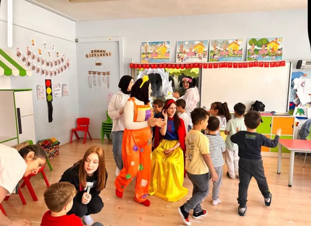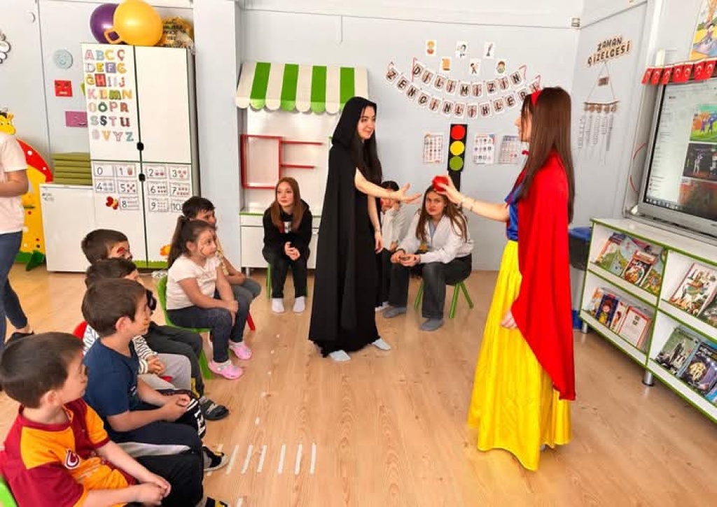Okulumuz öğrencileri, sosyal sorumluluk çalışmaları kapsamında anlamlı bir etkinliğe imza attı. Öğrencilerimiz, ana sınıfı öğrencilerini ziyaret ederek onlara unutulmaz bir gün yaşattı. Ziyaret kapsamında lise öğrencilerimiz, miniklere çeşitli hikâye ve masallar okudu. Bununla da yetinmeyen öğrencilerimiz, masal kahramanlarını canlandırarak miniklere hem eğitici hem de eğlenceli anlar yaşattı. Renkli kostümlerle gerçekleştirilen bu canlandırmalar, çocukların büyük ilgisini çekti. Bu güzel etkinlik sayesinde hem küçük öğrencilerimiz keyifli vakit geçirdi hem de lise öğrencilerimiz toplumsal duyarlılık ve gönüllülük konusunda önemli bir deneyim kazanmış oldu. Etkinliğe katkı sunan tüm öğrencilerimize teşekkür ediyoruz.